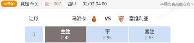 总体来说看好马洛卡主场能赢下比赛,竞彩选择胜,预测比分1:0或2:1。